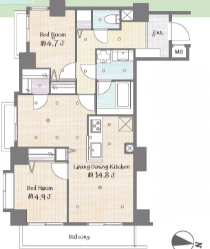 LDK 14.8畳 洋室 4.7畳 洋室 4.9畳