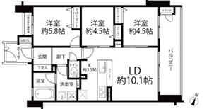 洋室 4.5畳 洋室 4.5畳 洋室 5.8畳 LDK 10.1畳
