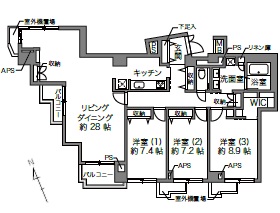 洋室 7.4畳 洋室 7.2畳 洋室 8.9畳 LDK 28畳