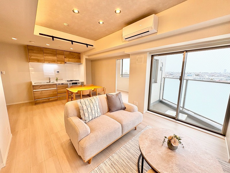フローリング、クロス、洗面、トイレ、キッチン、ユニットバス、建具、新規エアコン設置