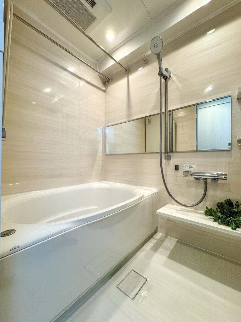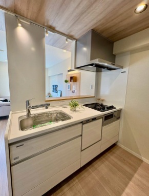 リノベーション ガスコンロ システムキッチン 食器洗い乾燥機 給湯 追い焚き 洗髪洗面化粧台 浴室乾燥機 ユニットバス 温水洗浄便座 エアコン 室内洗濯機置き場 CATV オートロック 都市ガス エレベータ 宅配ボックス バルコニー フローリング