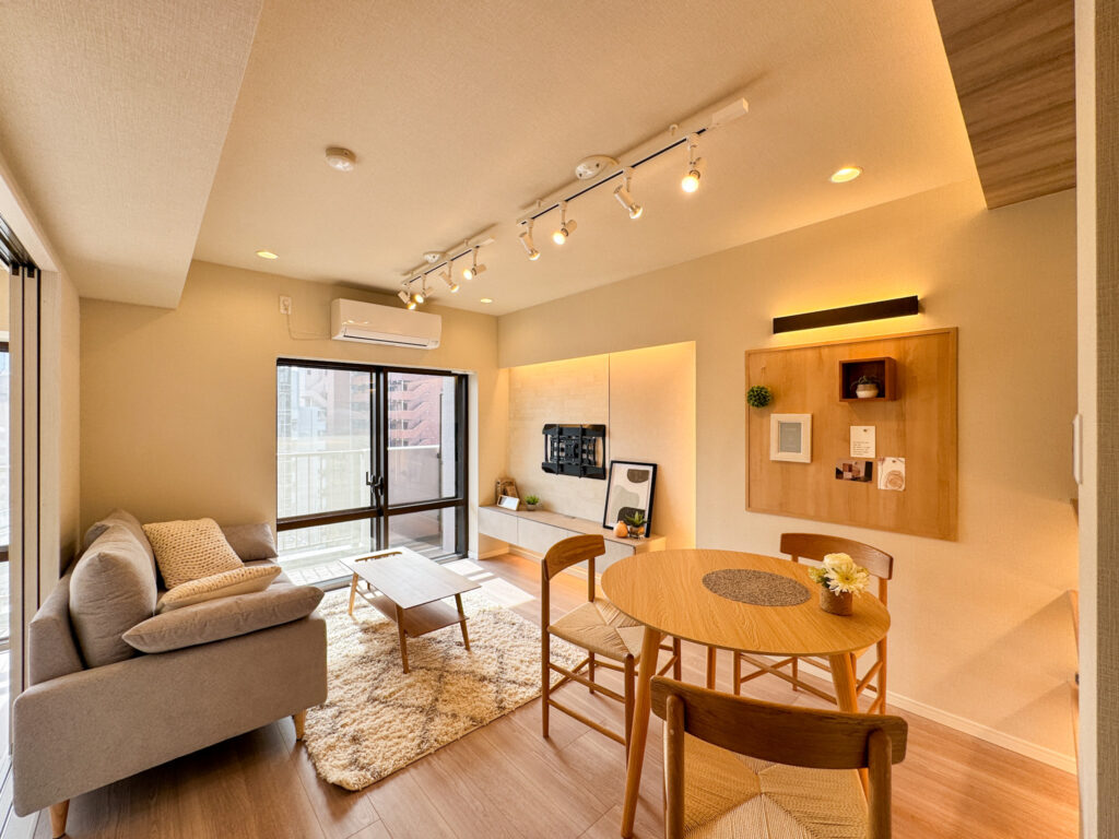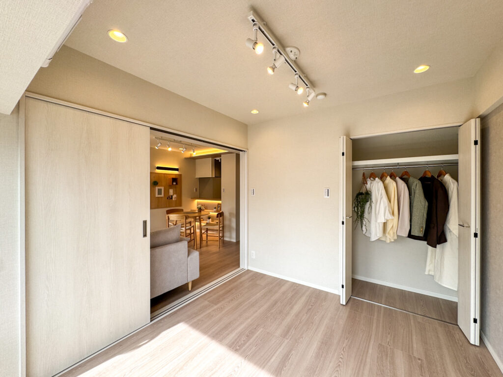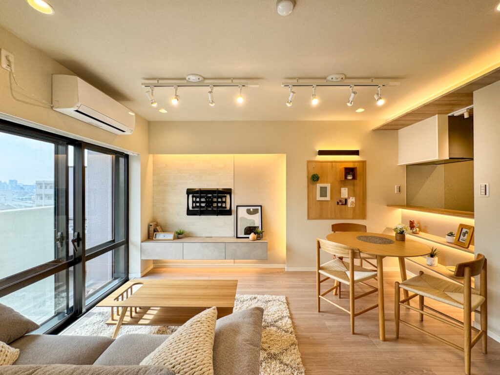 リノベーション内容 フローリング貼替、クロス張替え、洗面台交換、トイレ交換、ユニットバス交換、建具交換 エアコン設置