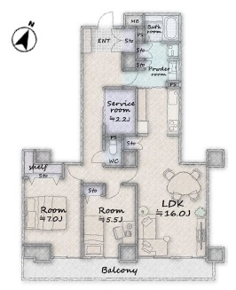 S 2.2畳 洋室 5.5畳 洋室 7畳 LDK 16畳